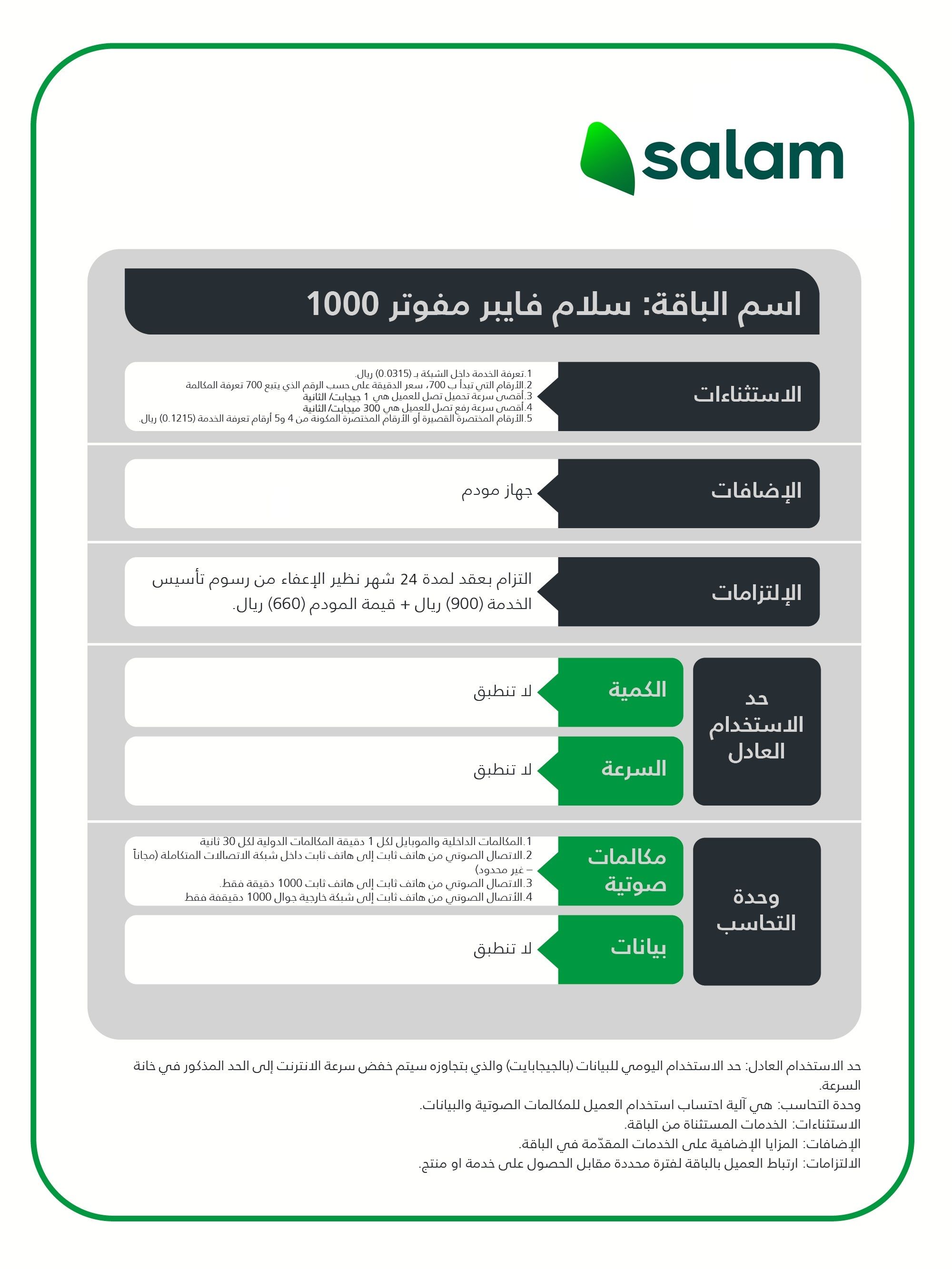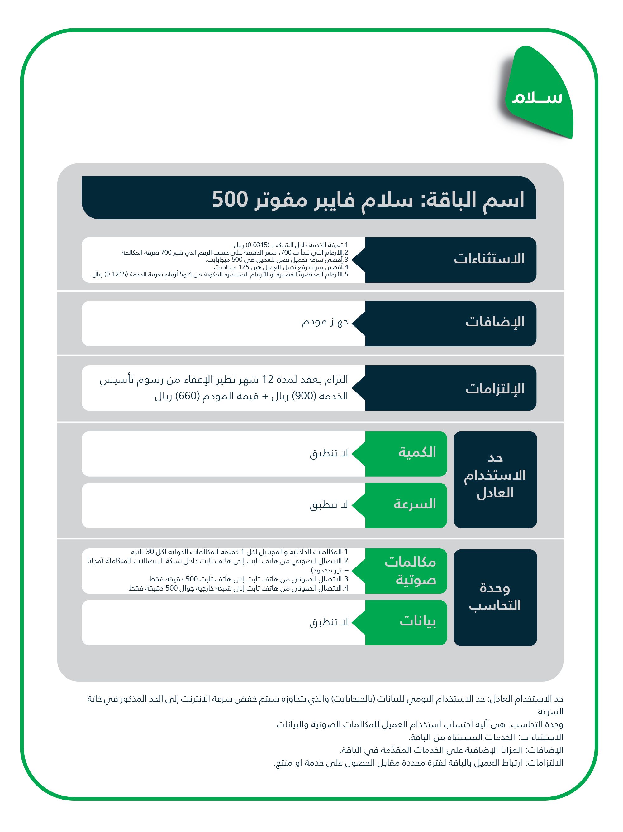 خدمة الخط الثابت من سلام فايبر بالدقائق المجانية متاحة في المناطق المدعومة.